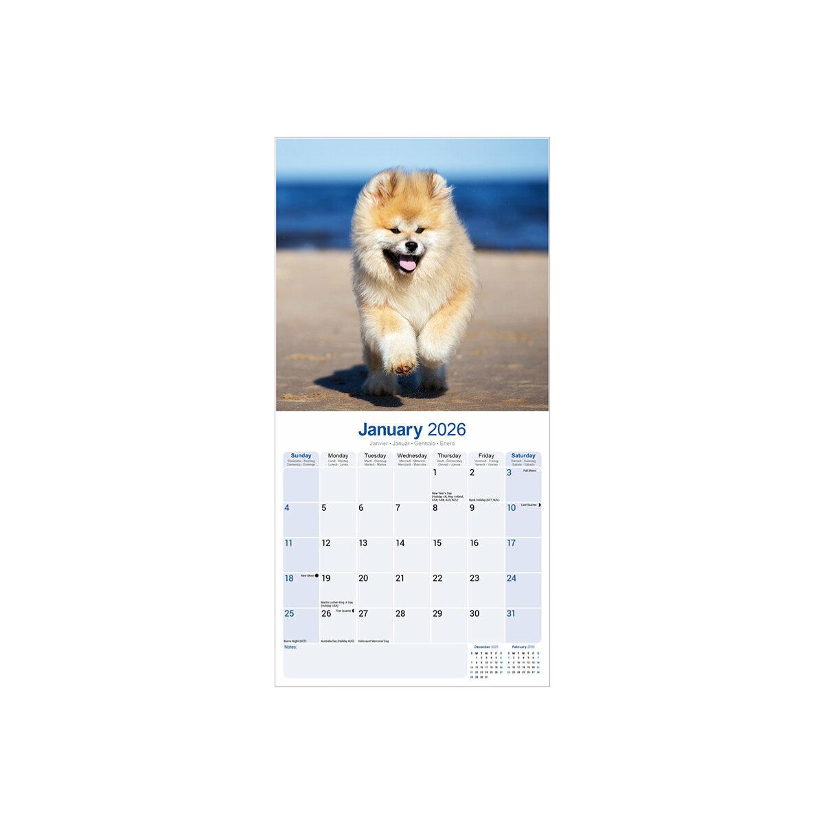 Un calendrier de 16 mois utilisable à partir de septembre 2025 contenant 13 belles images de votre race de chien préférée, l’AKITA INU. Le calendrier contient tous les jours fériés, les événements notables et les dates importantes. Le calendrier comporte également de grandes grilles pour prendre des notes sur ces dates spéciales à retenir.