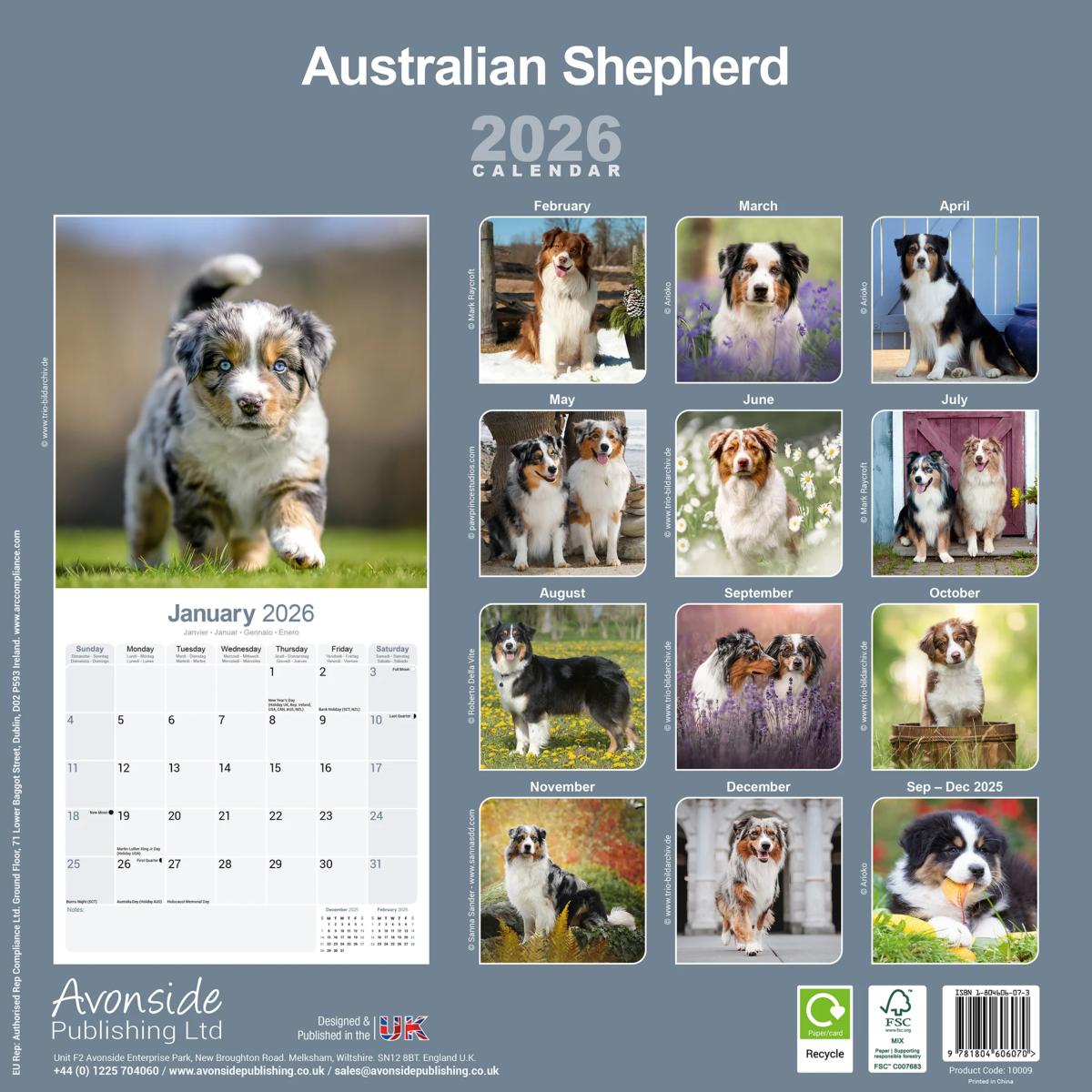 Un calendrier de 16 mois utilisable à partir de septembre 2025 contenant 13 belles images de votre race de chien préférée, le BERGER AUSTRALIEN. Le calendrier contient tous les jours fériés, les événements notables et les dates importantes. Le calendrier comporte également de grandes grilles pour prendre des notes sur ces dates spéciales à retenir.