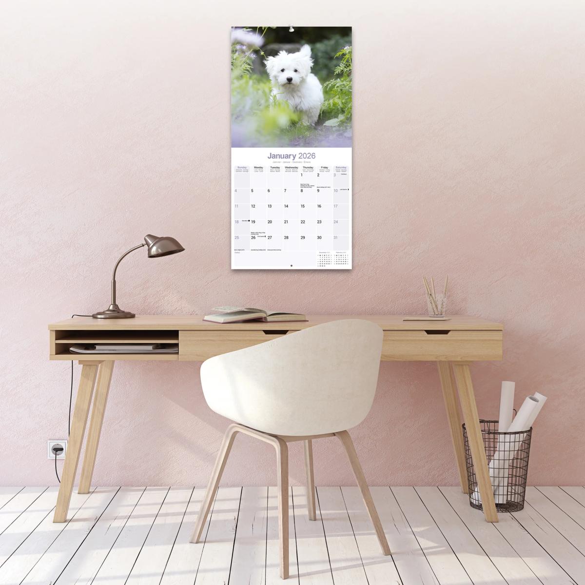 Un calendrier de 16 mois utilisable à partir de septembre 2025 contenant 13 belles images de votre race de chien préférée, le BICHON MALTAIS. Le calendrier contient tous les jours fériés, les événements notables et les dates importantes. Le calendrier comporte également de grandes grilles pour prendre des notes sur ces dates spéciales à retenir.