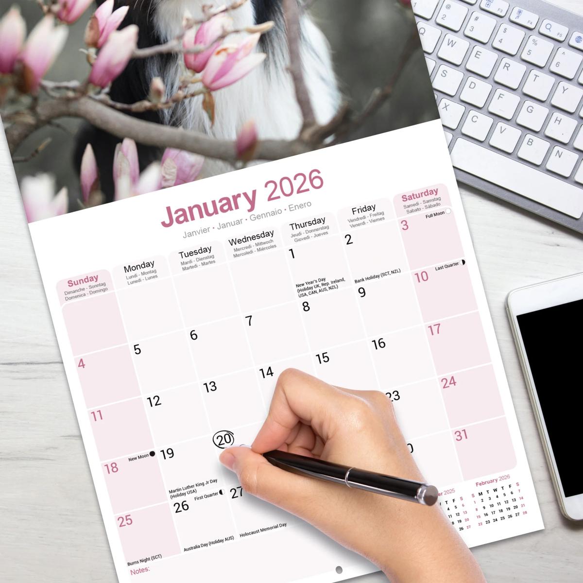 Un calendrier de 16 mois utilisable à partir de septembre 2025 contenant 13 belles images de votre race de chien préférée, le BORER COLLIE. Le calendrier contient tous les jours fériés, les événements notables et les dates importantes. Le calendrier comporte également de grandes grilles pour prendre des notes sur ces dates spéciales à retenir.