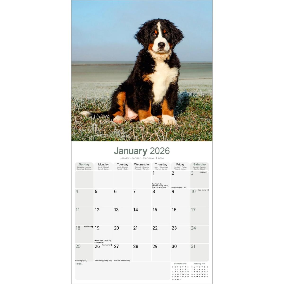 Un calendrier de 16 mois utilisable à partir de septembre 2025 contenant 13 belles images de votre race de chien préférée, le BOUVIER BERNOIS. Le calendrier contient tous les jours fériés, les événements notables et les dates importantes. Le calendrier comporte également de grandes grilles pour prendre des notes sur ces dates spéciales à retenir.