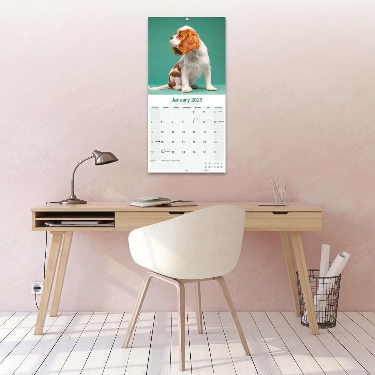 Un calendrier de 16 mois utilisable à partir de septembre 2025 contenant 13 belles images de votre race de chien préférée, le CAVALIER KING CHARLES. Le calendrier contient tous les jours fériés, les événements notables et les dates importantes. Le calendrier comporte également de grandes grilles pour prendre des notes sur ces dates spéciales à retenir.