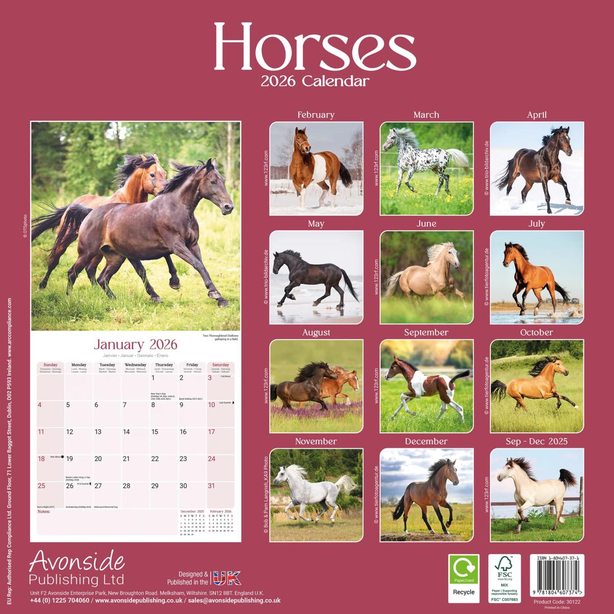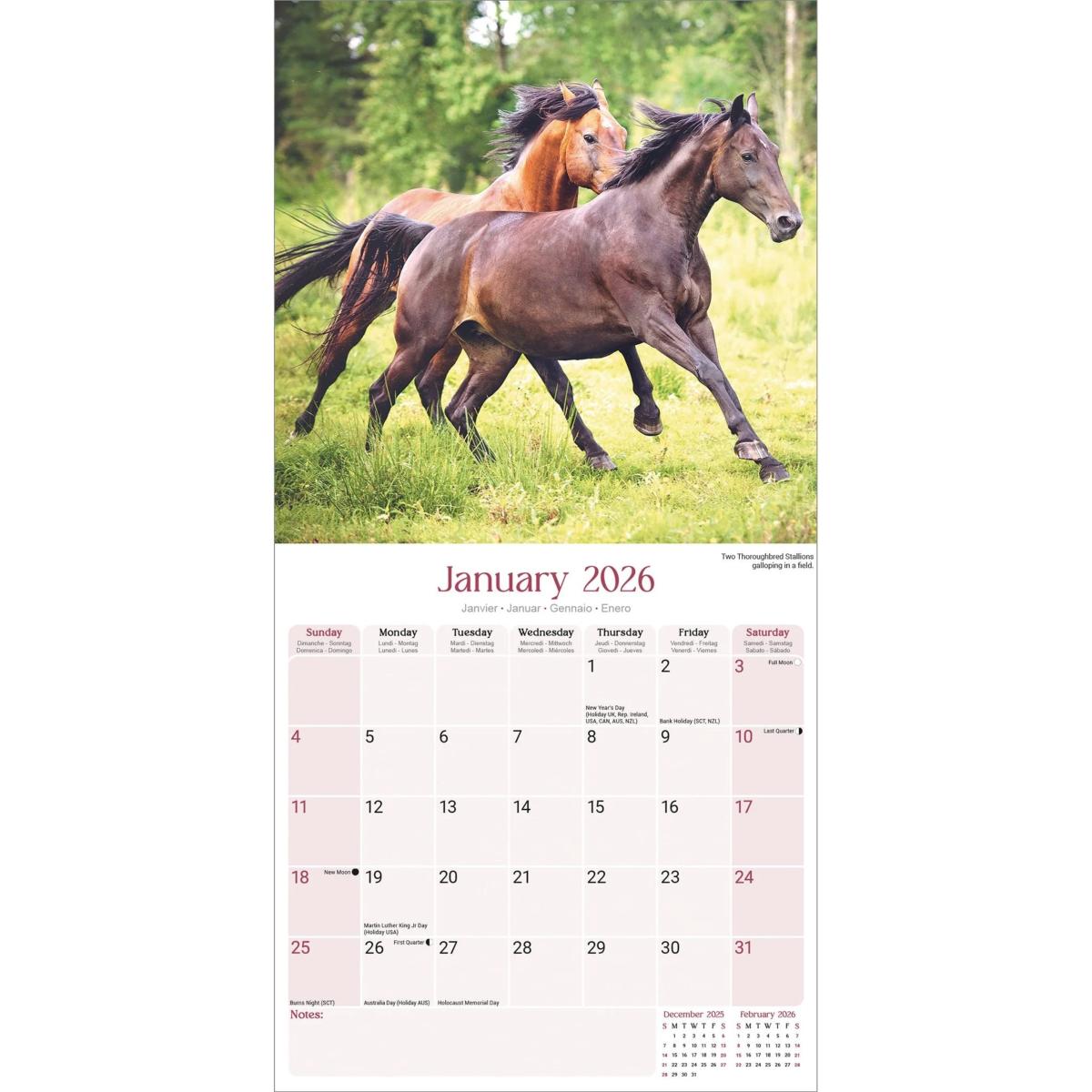 Un calendrier de 16 mois utilisable à partir de septembre 2025 contenant 13 belles images de votre race de chien préférée, les CHEVAUX. Le calendrier contient tous les jours fériés, les événements notables et les dates importantes. Le calendrier comporte également de grandes grilles pour prendre des notes sur ces dates spéciales à retenir.