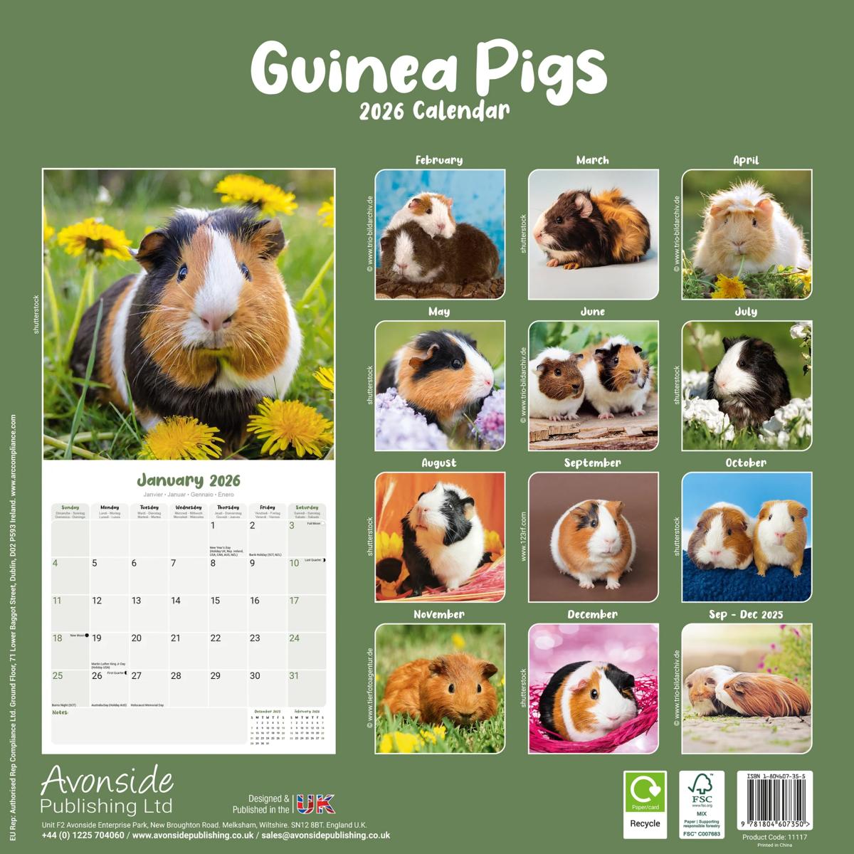 Un calendrier de 16 mois utilisable à partir de septembre 2025 contenant 13 belles images de votre race de chien préférée, les COCHONS D'INDE - COBAYES. Le calendrier contient tous les jours fériés, les événements notables et les dates importantes. Le calendrier comporte également de grandes grilles pour prendre des notes sur ces dates spéciales à retenir.