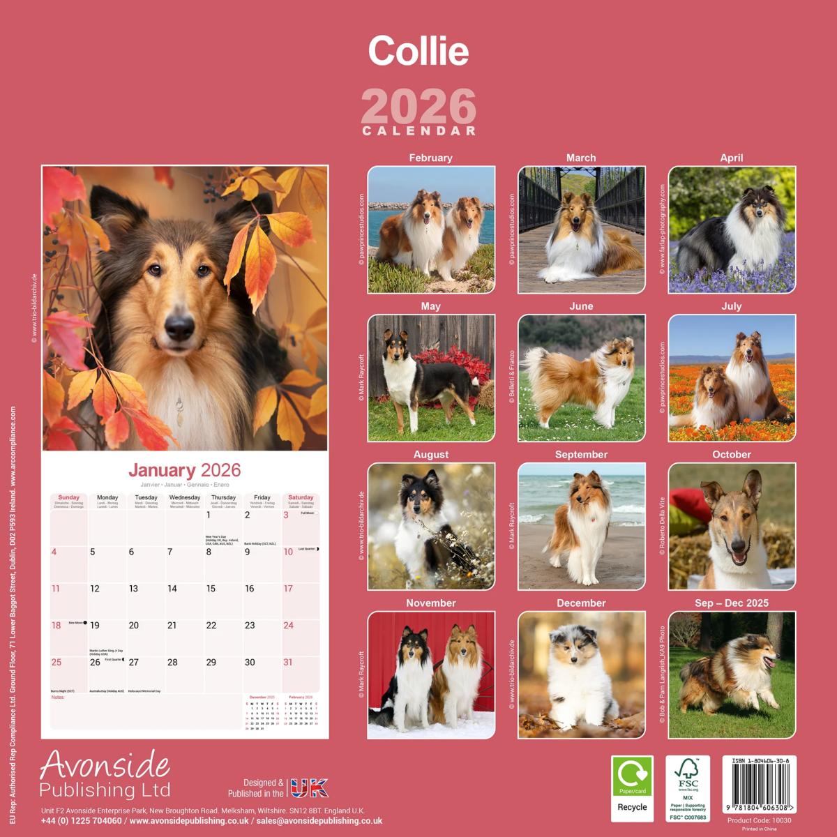 Un calendrier de 16 mois utilisable à partir de septembre 2025 contenant 13 belles images de votre race de chien préférée, le COLLEY. Le calendrier contient tous les jours fériés, les événements notables et les dates importantes. Le calendrier comporte également de grandes grilles pour prendre des notes sur ces dates spéciales à retenir.