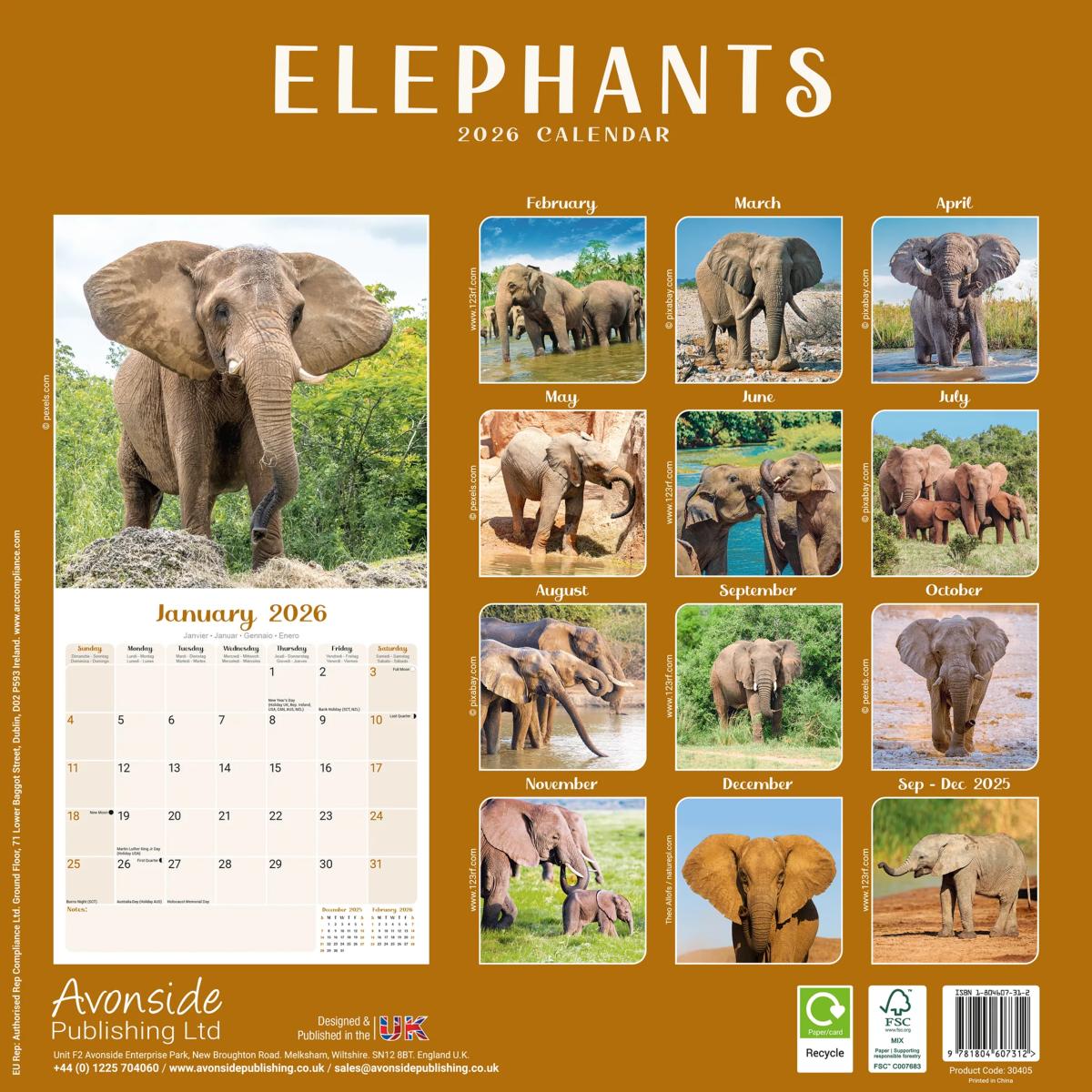 Un calendrier de 16 mois utilisable à partir de septembre 2025 contenant 13 belles images de votre race de chien préférée, les ELEPHANTS. Le calendrier contient tous les jours fériés, les événements notables et les dates importantes. Le calendrier comporte également de grandes grilles pour prendre des notes sur ces dates spéciales à retenir.