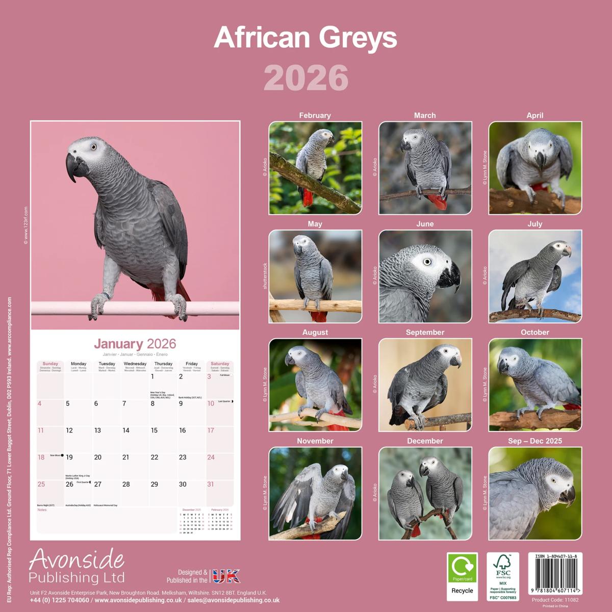 Un calendrier de 16 mois utilisable à partir de septembre 2025 contenant 13 belles images de votre race de chien préférée, le GRIS DU GABON. Le calendrier contient tous les jours fériés, les événements notables et les dates importantes. Le calendrier comporte également de grandes grilles pour prendre des notes sur ces dates spéciales à retenir.