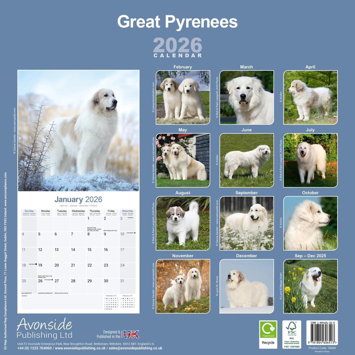 Un calendrier de 16 mois utilisable à partir de septembre 2025 contenant 13 belles images de votre race de chien préférée, le MONTAGNE DES PYRENEES. Le calendrier contient tous les jours fériés, les événements notables et les dates importantes. Le calendrier comporte également de grandes grilles pour prendre des notes sur ces dates spéciales à retenir.