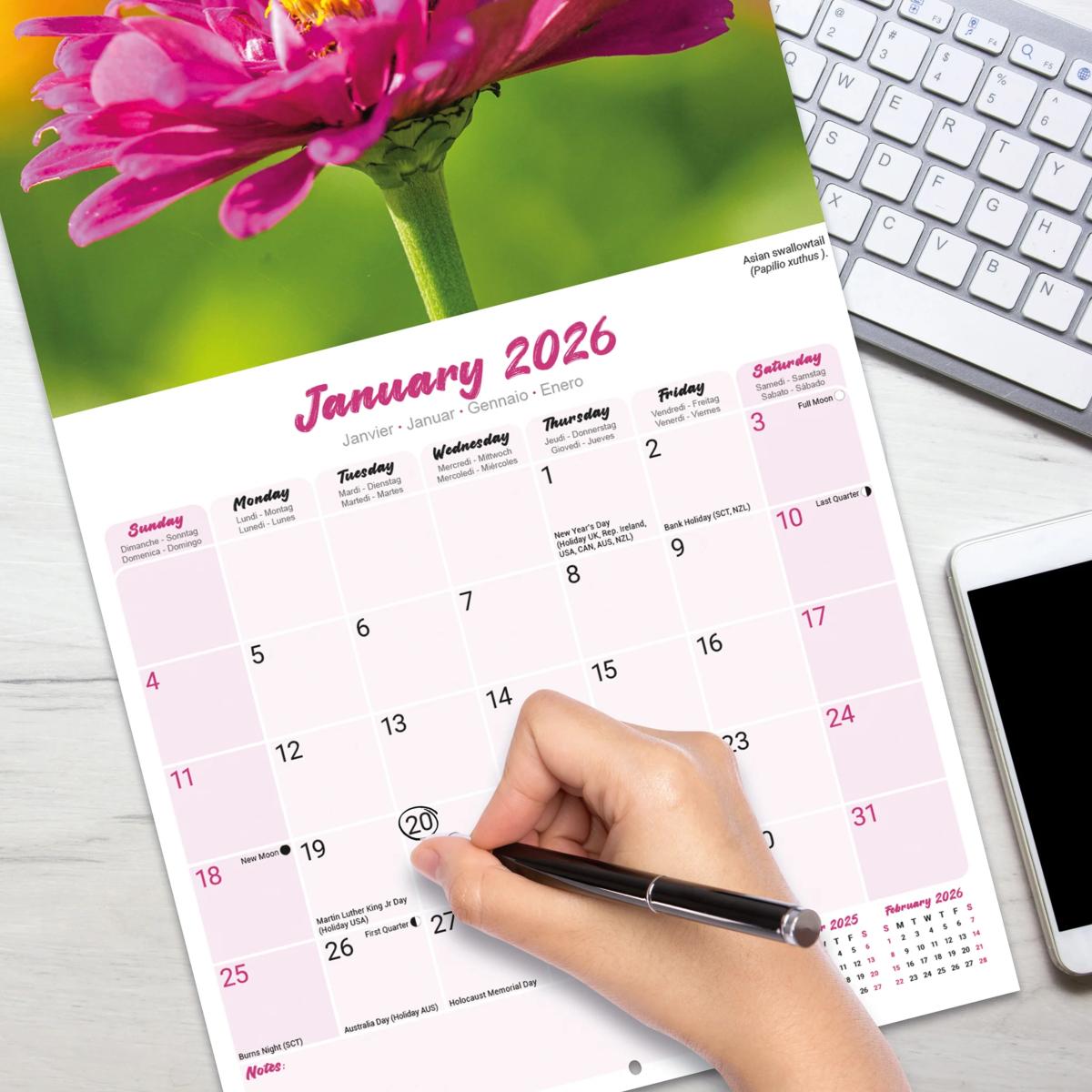Un calendrier de 16 mois utilisable à partir de septembre 2025 contenant 13 belles images de votre race de chien préférée, les INSECTES PAPILLONS. Le calendrier contient tous les jours fériés, les événements notables et les dates importantes. Le calendrier comporte également de grandes grilles pour prendre des notes sur ces dates spéciales à retenir.