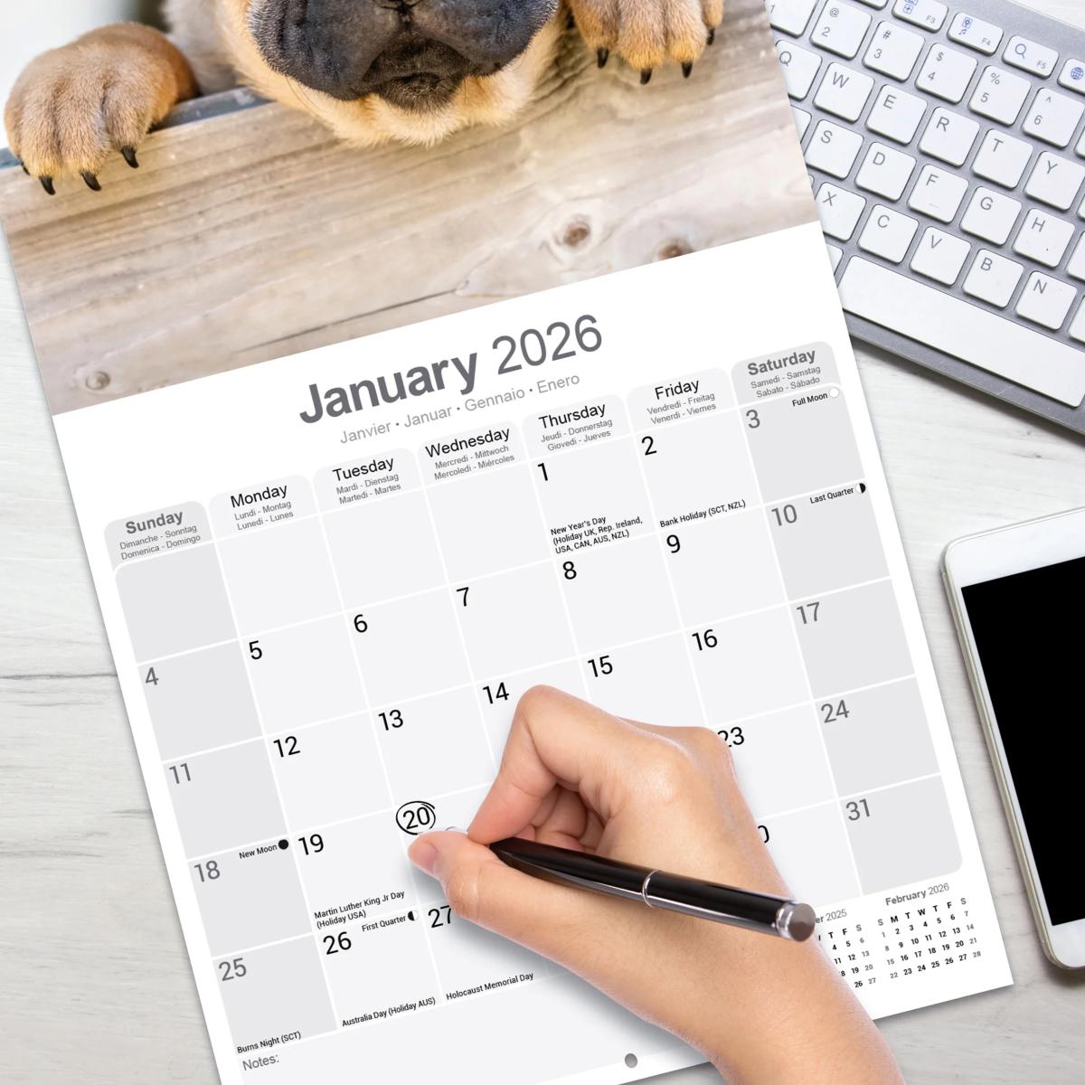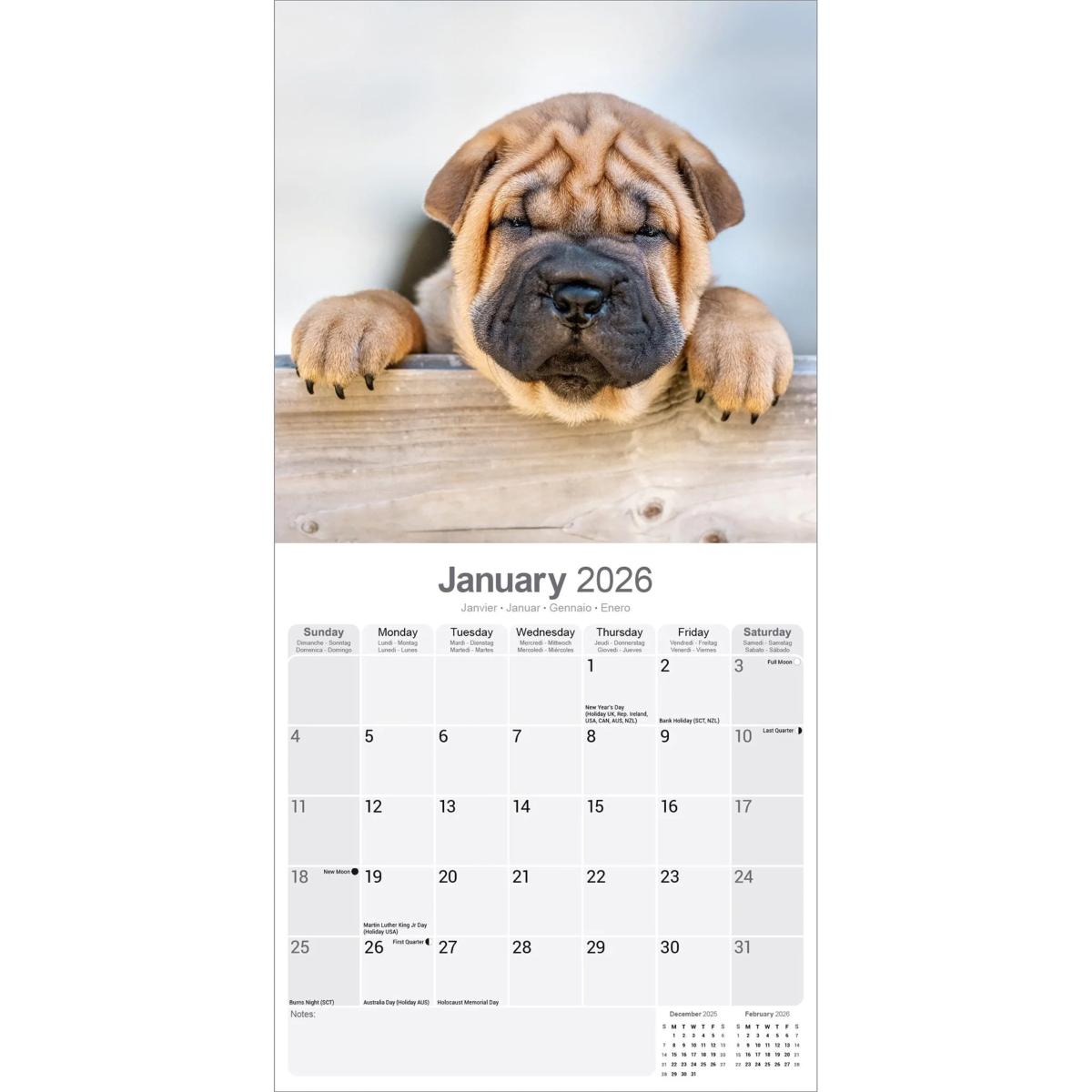 Un calendrier de 16 mois utilisable à partir de septembre 2025 contenant 13 belles images de votre race de chien préférée, le SHAR PEI. Le calendrier contient tous les jours fériés, les événements notables et les dates importantes. Le calendrier comporte également de grandes grilles pour prendre des notes sur ces dates spéciales à retenir.