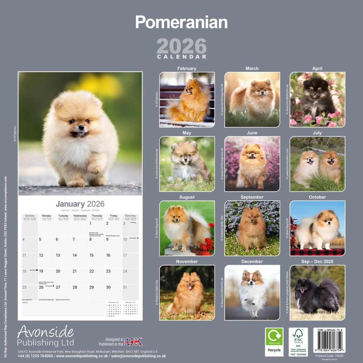 Un calendrier de 16 mois utilisable à partir de septembre 2025 contenant 13 belles images de votre race de chien préférée, le SPITZ NAIN. Le calendrier contient tous les jours fériés, les événements notables et les dates importantes. Le calendrier comporte également de grandes grilles pour prendre des notes sur ces dates spéciales à retenir.